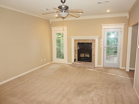 This is modern backwoods living at its finest. You won't hear or see neighbors from this house. It has wooded acres, but only a small amount of 'yard' to deal with. The house has a rear deck and a two-car garage. Inside, carpet, tile and hardwoods, ceiling fans and window coverings throughout. It has a wood-burning fireplace insert that the owner says will heat the house nicely. The master suite has a large bedroom with walk-in closet and a master bath with whirlpool tub and walk-in shower. The kitchen is furnished with electric rangetop, built-in oven and microwave, dishwasher, and side-by-side refrigerator. The tenant pays electric and water only, and is responsible for yard care. Pets are allowed, and this is a non-smoking property.