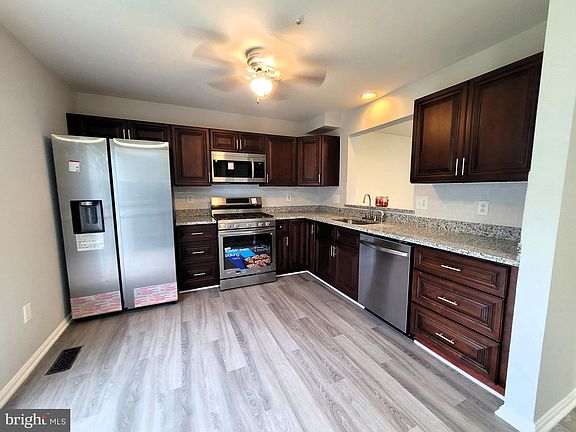 Freshly renovated, spacious townhouse in convenient location. Freshly painted and all new flooring, new carpet, new luxury vinyl planks, large updated kitchen with new granite countertops, new stainless steel appliances, new cabinets with pie cut 2 shelf Lazy Susan, large open dining room and living room. Finished lower level with family room , with full bath and walk-out, 3 bedrooms on upper level, new remodeled bathroom . Private back yard, fully fenced and backs to wooded area. New Roof with architectural singles, Excellent location close to transportation, shopping and other great features. Come and see it, bring in all offers!!