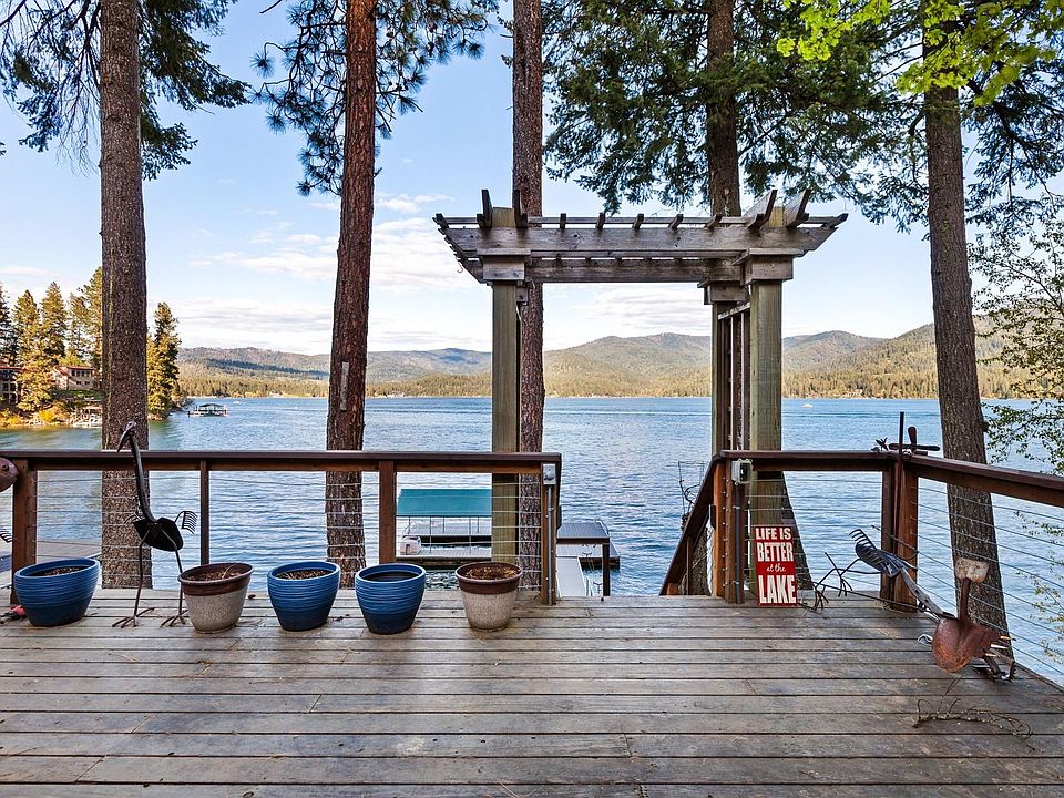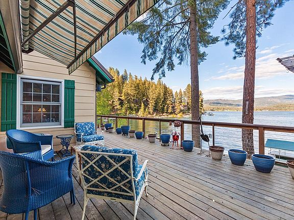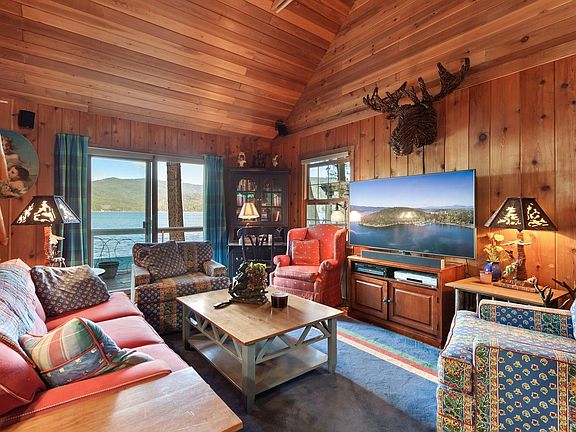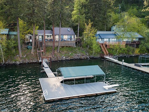 Adorable waterfront cottage on Hayden Lake's convenient West side. So close to the water & only 25 steps from deck to dock. 10 minutes from city services & shopping. Southeastern exposure, views of mountains. Wonderful early morning sun. Crystal clear deep water frontage & Trex covered canopied deck. Charming cabin w/wood floors & knotty cedar interior & ceilings. Native rock fireplace. Slider to deck from bedroom & dining room. Bedroom/sitting area in 2nd story loft. Newer stainless steel appliances included. Detached bunk house, retractable awning on deck.