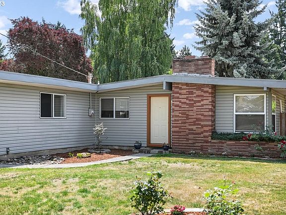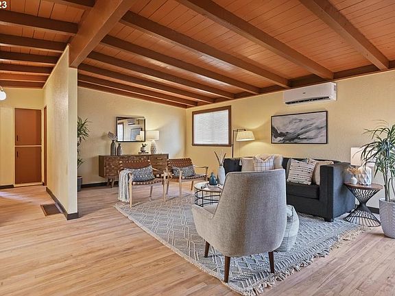 The cutest little midcentury you ever did see! This cozy 2bed/1bath is the perfect starter home in Parkrose Heights. Original hardwoods flow gracefully from the open-floor living and dining area into the two bedrooms. The living room features abundant natural light, highlighting the beautiful craftsmanship and midcentury aesthetic with exposed beams and brick fireplace. The converted garage adds an extra bonus area, perfect for a home office, game room, or den. And get ready for the expansive covered back patio and deck! Complete with wrap around backyard and manageable garden area, it's an outdoor oasis that promises endless possibilities for relaxation and entertainment. Updates include: new appliances, newer windows, and new interior paint. This little cutie is sure to capture your heart! Schedule a showing today! [Home Energy Score = 5. HES Report at https://rpt.greenbuildingregistry.com/hes/OR10219885]