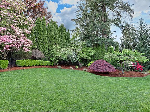 Location, Location! Montreux is perfectly situated at the epicenter of convenience between Cedar Hills and Cedar Mill, nestled in a park-like setting with large lots and quality homes built in the 1990s. This meticulous 4-bedroom + den home sits on a 13,000 sf lot and opens to a sunny, south-facing, beautifully manicured, private backyard with level walk-out access. Highlights include stunning curb appeal, an oversized 3-car garage, high ceilings, & vaulted living spaces, and access to serene community trails that lead directly to Timberland Center—home to popular restaurants, breweries, and Market of Choice.