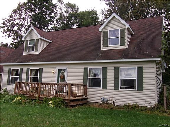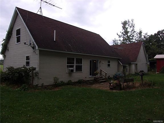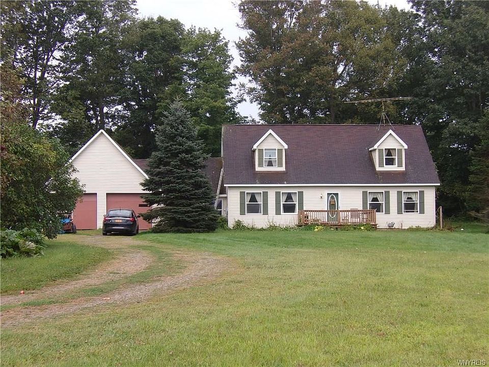 Winding driveway leads to this home that is situated on the back of the property that gives this privacy and seclusion. Make It Yours! Step up to home ownership at this 1716-SF Cape Cod home built in 1998 with an att. breezeway and a 2 car garage close to the Genesee River. Features include Master bed and bath on the first floor and 2 large bedrooms upstairs, 2.5 total bathrooms, casual living room and an open kitchen with work-island for rolling dough. The kitchen is open to the dining area and a family room which measures out to approx. 12 x 31 foot of open space. First-floor laundry and a second kitchen in the part finished basement with a poured concrete wall foundation. Exterior features a 30 x 30 insulated pole barn, back patio for your bird watching, garden area, pond and orchard.