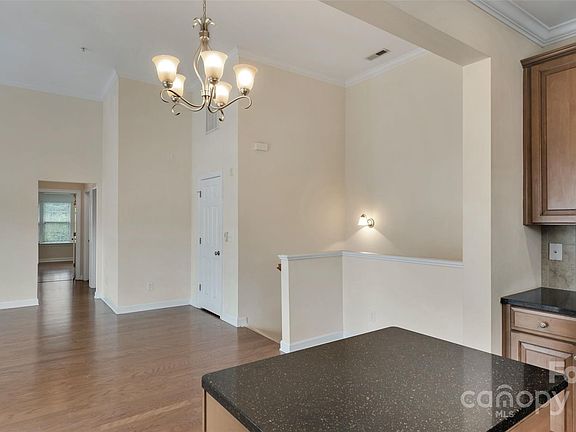 Well kept up end unit in Ballantyne with one car garage and large outdoor covered balcony. 9' ceilings and hardwood floors throughout. (No Carpet) Enter on the lower level and walk up the stairs to the nice open plan with a 15 foot vaulted ceiling in the Great Room. Granite counters and travertine tile backsplash accent the kitchen. Primary Suite has a walk in closet. Ballantyne school system.