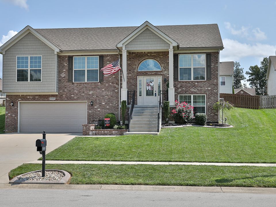 An easy place to call home! This raised ranch style floorplan is open and sun filled. Some special features include 10'ceiling in the great room, hardwood and ceramic floors on the main level except for the bedrooms, you will enjoy the big kitchen with bay window, tile back splash and lots of cabinetry the appliances may remain, formal dining room, spacious master bedroom with 2 closets! The master bath has dual raised vanities. First floor convenient laundry room. The finished lower level has wood stairway treads leading to it. The family room is huge. Also find a third full bath and fourth bedroom. The flat back yard offers lots of room for play and gardening-seller even installed a fence! This neighborhood is very popular and the building is complete. There is a 1 year 2-10 home owne warranty.