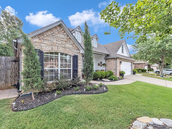 Gorgeous 3 bedroom/2 full bath, single story house in award winning Jenks schools! Beautiful curb appeal with spectacular gardens, and a backyard with a view! This home has a bright open floor plan and lots of natural light, with large kitchen that opens to over- sized family room and formal dining. Formal dining off entry is spacious and perfect for entertaining Split floor plan with master off of the kitchen. Office and 2 large bedrooms with walk in closets on opposite side of the house. Master has enormous closet that connects directly to laundry room! Bright kitchen with eat in area, over-sized pantry and newer appliances. Many upgraded finishes and architectural features. All new Stainmaster carpet and upgraded padding through out the house! All new exterior paint and landscaping. This neighborhood has a pool, play- ground and a catch and release pond with deck!