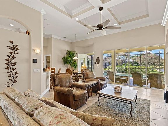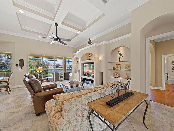 Enjoy an exceptional, inviting and sensational lifestyle in the highly desirable community of Coco Bay. Encompassing 2,228 square feet under air, three bedrooms, two baths and a den, this elegantly appointed home is positioned on an oversized lakefront lot with western exposure. Upon entry, you are welcomed into a great room with soaring coffered ceilings and a built-in entertainment center. Discover your inner chef with the gourmet kitchen, boasting stainless steel appliances and solid surface countertops. At the end of the day, retreat to the master suite with a jacuzzi soaking tub, frameless glass shower and access to the lanai. Outside awaits a tropical oasis with pool and captivating water views, offering the perfect environment for hosting guests and watching the sunset. Ceramic tile on the diagonal can be found throughout the home, aside from the bedrooms and den which feature solid hardwood maple floors. A brick paver driveway leads to the oversize two-car garage, providing plenty of space for all your needs. New hot water tank and High Efficiency Trane A/C just installed. Furnishings are available with this exceptional home. Live the Florida life you've always dreamed.