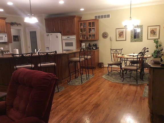 This Beautiful, well-maintained, conveniently located, 3 bdrm 3 full bath open concept, split ranch, 9ft ceilings, 12ft in family & dining, hardwood floors, eat-in kitchen and formal dining, finished basement, pool table area with custom bar, exercise room or craft room, playroom or bedroom, 2 lg. storage areas, deck half covered, half open, Anderson windows, irrigation, side-entry garage, corner lot. Beautiful landscaping.
