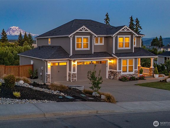 Welcome to Shawnee Ridge one of Pierce County's most desirable neighborhoods. Breathtaking views of Mount Rainier abound! This highly sought after Custom 4+ bedroom, 2.5 bath open design is a real gem. Spectacular sunrise to sunset views from inside & outside this home are stunning. Potential daylight basement w/ over 1,000 sf of unfinished ADU / Shop space is an incredible added bonus. Extensive professional landscaping is sure to impress with custom retaining wall & fully fenced side yard w/ turf play area. Gorgeous features throughout w/ newer AC unit, Tankless Water Heater, large lot & more! Top rated schools close by, just minutes from both downtown Puyallup & Sumner Train Stations & all South Hill amenities. Call now for a tour!