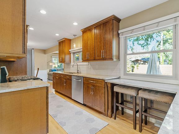 Welcome to this storybook West Bloomington charmer. An updated kitchen boasts maple, soft close cabinetry, stainless appliances, granite counters plus under cabinet lighting. The main floor is complimented by a sizable dining area, 2 separate living areas + 2 bedrooms. A large primary suite with a walk in closet and primary bathroom serves as an owners retreat. Notable updates include windows (2017), roof + gutters (2015), furnace/ac (2016), concrete driveway (2017). The 3rd garage stall is a tandem stall currently used as a workshop area. The backyard truly feels like a fairytale oasis; 2 patio spaces, a huge flat yard enclosed by a privacy fence. Just 1/2 mile from Dwan Golf Course, less than 2 miles to 35W, 5 miles to Hyland Play Area and Bush Lake Park Reserve, MOA, Dred Scott and Wilkie National Wildlife Refuge. Accessibility is unmatched. Embrace the comfort and serenity that awaits you in this haven, with all the big ticket items taken care of.