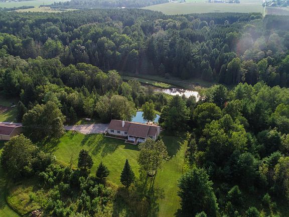 Acreage, Riverfront & Pond! This beautiful home offers so many features that you can't find anywhere else. The view from the back deck overlooks the artesian fed pond and 500+ feet on the river. Open floor plan on both levels. Living room has a cathedral ceiling, wood floors & gas fireplace. There's a covered porch on the front if you want to escape the sun. Master suite has double closets & a tiled bathroom with jet tub and separate shower. All bedrooms have large closets. Convenient main floor laundry. Yard is partially irrigated. Walk-out basement has a wood burning stove, a bathroom, a wet bar & a pool table that will stay: you may never want to leave. There's a 26x30 2-car att garage & a 30x40 pole barn with electricity and water. Truly amazing to have all of this in one package!