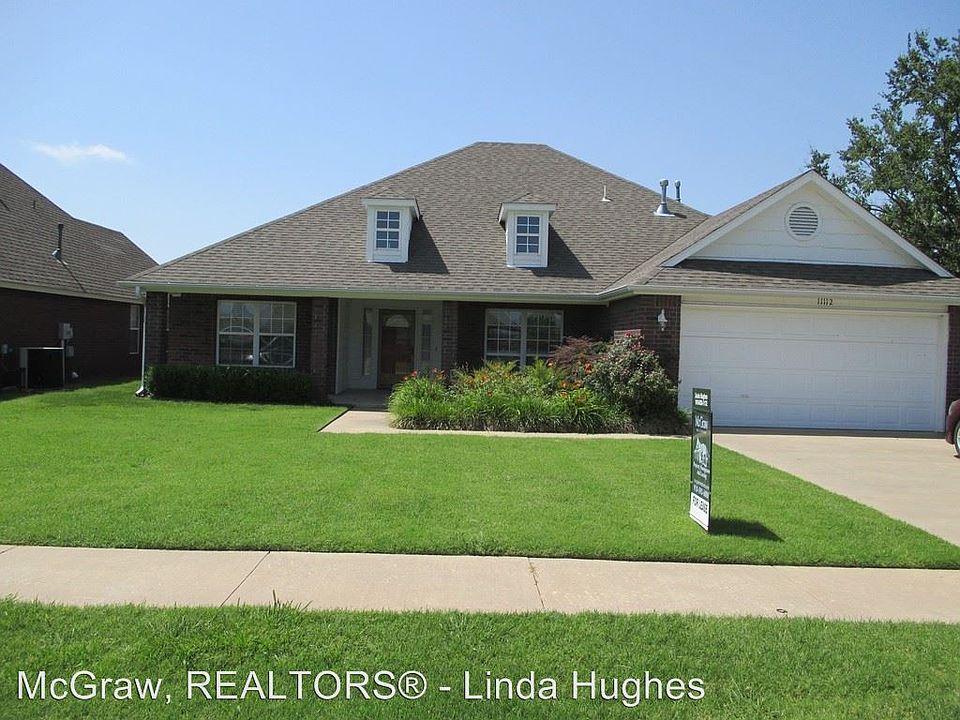 Lovely Country Estates Home, Owasso Schools - Lovely and elegant brick home in Country Estates IV, Collinsville address and Owasso school district. Great floor plan and many nice extras including arched doorways, 9+ vaulted and pan ceilings with crown molding, ceramic tiled entry, kitchen and baths, wainscot, formal dining room plus breakfast nook, breakfast bar, fireplace, recessed lighting. All rooms are very spacious and open. Kitchen appliances are all provided including microwave and fridge. Newer tile flooring in Living, formal dining areas. Utility room with adjoining 1/2 bath. Master bath has jetted tub, walk in shower, double vanity & large walk in closet. Nicely landscaped yard, flagstone walk, storage shed, covered patio, privacy fenced. Convenient to Hwys 169, 75, 20 for easy commute. Call LINDA HUGHES 918-638-1172 MCGRAW REALTORS Property Management, Leasing and Sales (RLNE2865651)