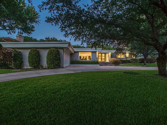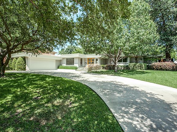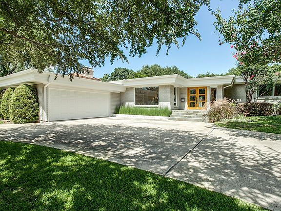 Enjoying one of the top locations in Preston Hollow, this exciting mid-century modern home sits on high ground overlooking a particularly beautiful street surrounded by million $ homes, w contemporary landscaping, manicured lawns & trees, all on a .548 acre lot w circular drive & pool! Extremely appealing w clean lines & quality updates, including a sparkling white kitchen w white quartz counters & SS appliances, it has smooth walls great for art collectors, recessed lighting, clear finish natural wood floors & large white wood windows providing wonderful views of this stunning property. The huge, lush backyd w beautiful pool provides endless possibilities to expand the home, add an outdoor living area & more!
