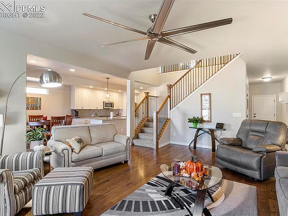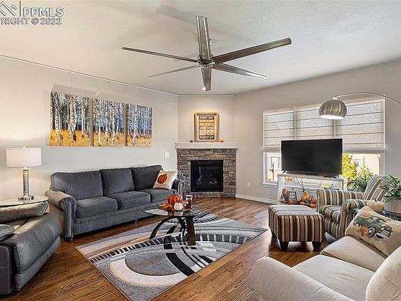 Welcome home to the traditional elegance of this beautifully designed 2-story with 4-Car Garage! From the gleaming wood floor flowing through much of the main level, to the gorgeous Kitchen with high-grade granite countertops and white cabinetry, the designer features will bring you in and make you want to stay. The Kitchen also features soft-close drawers, a butler’s pantry, & stainless-steel appliances, incl refrigerator & NEW (2021) dual-fuel LG range/oven w/gas top & double electric ovens. The light & bright Living Room includes modern ceiling fan & gas fireplace w/blower. Formal Dining Room plus Breakfast Nook, Office & Powder Room. The 4-car garages are insulated & wired for 220v, with larger heated garage currently set up as workshop. Upstairs relax in the Master Bedroom Suite featuring inspiring views of Pikes Peak, large walk-in closet, & 5-piece Master Bath w/soaking tub, double vanity & oversized shower with bench. Three additional Bedrooms, full hall Bath & Laundry Room up. Downstairs you’ll find a spacious Family Room with garden level windows, an entertainment area & a gaming area. Plus, Bedroom #5, hall Bath with oversized shower, & large 17x13 storage room. This home offers wonderful outdoor living featuring composite deck with shade sail, hot tub with NEW cover (2022), lawn space & garden boxes with drip system. Additional features of this home include low-maintenance stucco siding, Central Air, humidifier, security system, stylish security door (NEW 2019), modern wrought iron stair rail, window coverings & upgraded class IV impact-resistant roof (NEW 2019). Located in the popular North Fork at Briargate neighborhood featuring low HOA dues, community events, trails, green space park, and School District 20 Pine Creek High School and brand-new STEM-focused Encompass Heights Elementary. Easy access to Powers Blvd, shopping centers on Interquest and a short drive to the new entertainment and shopping district at Polaris Pointe/Northgate. A lovely home!