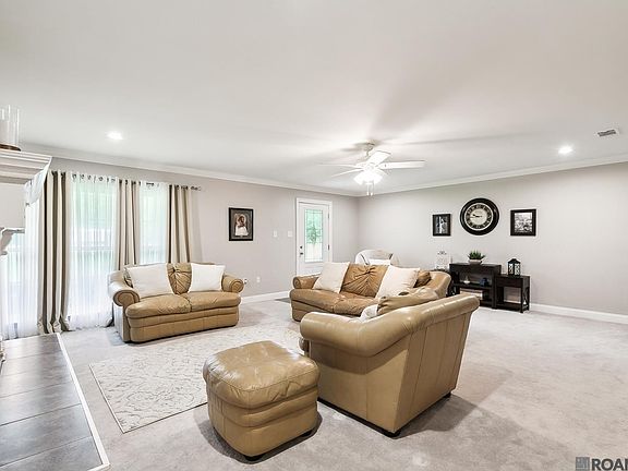 1.1 acres-zoned rural in St. Amant. Less than 1 mile from all St. Amant Schools which are top ranked in Louisiana. Wonderful renovations done with kitchen, bathrooms, newer HVAC, newer flooring, expanded closets and energy efficient double paned windows. 3 car extra-large garage and separate workshop/storage. Located on navigable water with bulkhead. The kitchen is amazing—one of the largest center islands featuring beautiful countertops, custom cabinetry, stainless steel appliances, updated lighting and so much storage! Large dining room off kitchen is spacious and where everyone loves to congregate! Large living room with beautiful masonry fireplace flanked by custom cabinetry for display and storage. Primary suite is spacious with tremendous closet space, en-suite bathroom features huge double head shower, clawfoot tub, double vanities, and skylight. Extra-large bedrooms with great closet space. Additional flex space is great for game room--it's huge with cathedral ceiling and sky lights. Has separate entrance and can be closed off with pocket doors from remainder of home which is perfect for Mother-in Law suite, as there are 2 bedrooms and full bathroom off den for separate living area or for business with private entrance. Oversized triple garage, separate workshop/storage building perfect for all the toys! Double width driveway and plenty of parking and space for RV and boat. Zoned Rural.