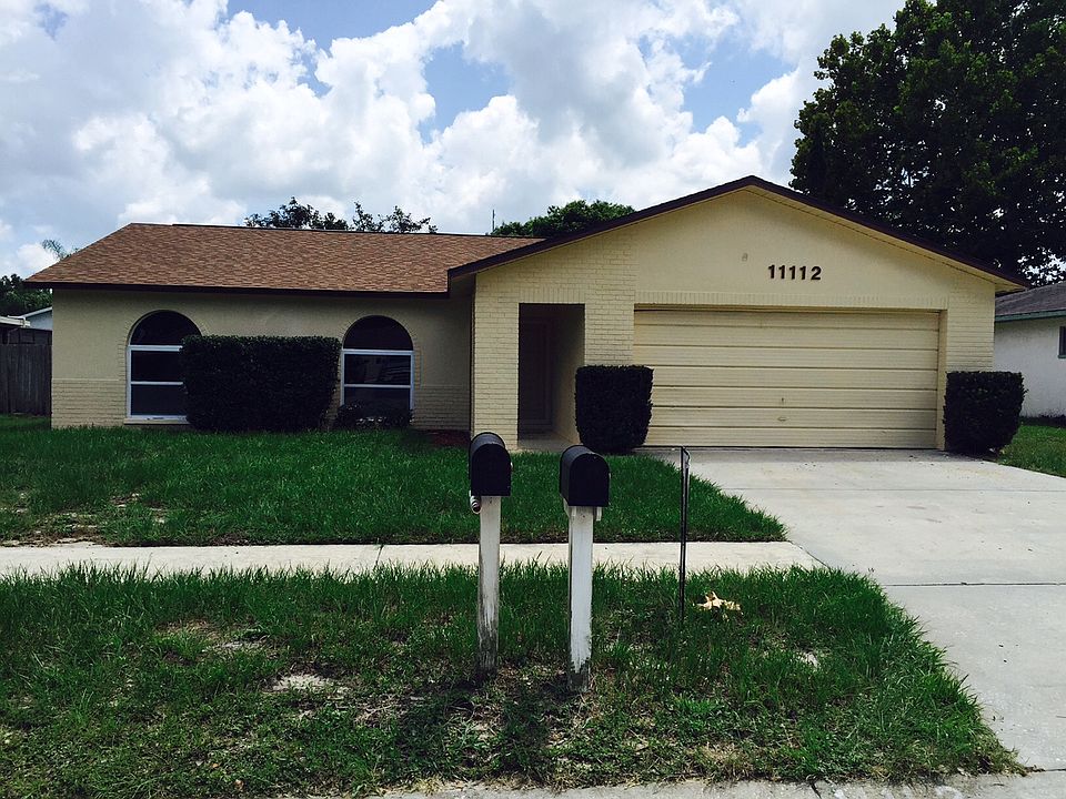 MOVE IN READY! BRAND NEW ROOF, NEW CARPET AND TILE FLOORS. NEW A/C AND HOT WATER TANK BEAUTIFUL NEW VANITIES TOILETS & LIGHT FIXTURES IN BOTH BATHS. WOOD KITCHEN CABINETS WITH GRANITE COUNTERS, NEW REFRIGERATOR AND RANGE HOOD AND DISHWASHER. GREAT ROOM WITH CATHEDRAL CEILING & WOODBURNING FIREPLACE. LARGE SCREEN ENCLOSED PORCH TOO. FRESHLY PAINTED IN AND OUT. COMMUNITY POOL & CLUBHOUSE. TRUE THREE BEDROOM HOME, NO CONVERTED FAMILY ROOM! HURRY!!!