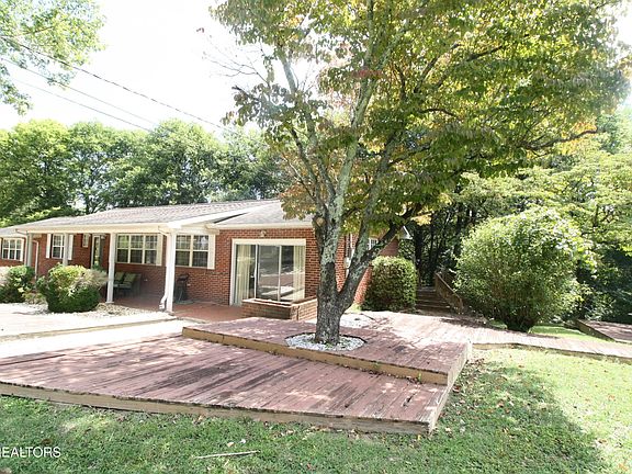 All brick basement ranch on 1.5 acres with privacy and a circular driveway in West Knoxville. Convenient location just outside of Farragut with easy access to Interstates, Turkey Creek Shopping and less than 30 min. from downtown, Oak Ridge, Maryville and airport. Original refinished oak hardwood floors, living room/dining room, den with dry bar, eat in kitchen, 23' x 21' primary bedroom with walk-in closet, 32' x 16' deck with wooded view, one car garage/workshop plus 25'wide 2 car garage. Partially finished area in basement could be 3rd or 4th BR or MIL suite (needs new ceiling and plumbing work). Basement not included in total sq. footage. Sold AS IS. Great potential but needs TLC. 3 BR on main, but one is small and septic is only permitted for the original 2 BR home. Seller has had no issues with septic and it was cleaned out in 2024.