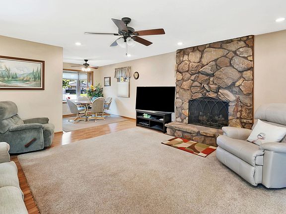 Well maintained ranch home, exterior is brick, vinyl siding, and vinyl eaves/soffits. Installed in 2024 a Class IV shingle by Rhoden Roofing. Detached hobby shop in the backyard with electricity. Stamped concrete covered patio, fenced yard, and sprinkler system. This home has three bedrooms on the main level, woodburning fireplace, the primary bedroom has an on suite, and main floor laundry. The lower level has a second woodburning fireplace, rec/family room, a full bath, and three additional finished rooms with closets.