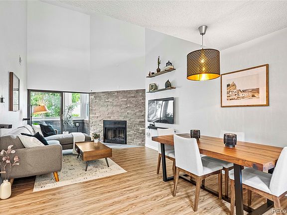 Fantastic Two Story Condo tucked away in the community! Enjoy the quiet community location away from the road noise overlooking the small greenbelt area. This well laid out floorplan welcomes you in with wood floors throughout the main level leading into the bright family room with a wood burning fireplace and vaulted ceilings making the space feel large and open. The updated kitchen features granite counters, subway tile throughout, Stainless Steel appliances and pantry area for storage. The main floor bedroom offers a walk-in closet, connected to the updated full bathroom and provides access to the private balcony making this a perfect option for guests! Retreat to the upper level to find an open loft boasting a great setup for an office or non-conforming bedroom if needed. The primary suite gives you plenty of space with vaulted ceilings, walk-in closet and updated bathroom with granite counters, tile flooring and subway tiled tub and shower. The enclosed balcony is a perfect place for additional entertaining or allows you to enjoy some peace and quiet. True maintenance free living with the HOA taking care of the exterior items, trash removal, and offering a community garden area to enjoy. In addition to the HOA amenities, take advantage of the awesome community with several parks, walking trails, basketball courts, tennis courts, ponds and more! Literally close to everything, you're nearby open spaces, golf courses and a short drive from Cherry Creek Shopping Center offering you tons of options for dining and shopping. Also, close to 225 and major routes for convenient commuting to Denver, DIA and Boulder. This home is truly a great option bringing it all together with updates throughout and a great location…don’t miss out!