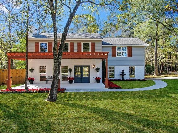 Stunning, professionally designed remodel/expansion tucked away in The Woodland's much sought after Grogan's Mill neighborhood. Only a few minutes to I-45, Woodlands Mall, Waterway and Cynthia Woods Mitchell Pavilion. Down-to-the-studs complete renovation with over 1000 square feet added. Includes four bedrooms (two owner suites!) and 3.5 custom bathrooms. Property features a new roof, new double-pane low-E windows, new siding, new AC unit, new duct work, new plumbing system and fixtures, two new water heaters, new electrical wiring, all new lighting fixtures, pergola, and exterior lighting added. Design features include custom built cabinetry with soft close doors/drawers throughout entire home. Open floor plan with kitchen overlooking family room featuring a custom-built entertainment center. Owner suite boasts a private balcony overlooking the expansive backyard. Bevolo exterior light fixtures, new flooring throughout; hardwoods, tile and carpet.