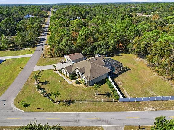 WOW! Stately beautifully appointed home with BRAND NEW ROOF before closing! This home checks all the boxes. Nestled prominently on a corner lot boasting 1.27 ACRES of land in the highly sought after ROYAL HIGHLANDS surrounded by well kept homes. LOCATION LOCATION! NO HOA, NO CDD, NO FLOOD ZONE! There is a BRAND NEW 650SF DETACHED GARAGE WORKSHOP for the car enthusiasts or hobbyist that is 14’ tall clear span inside with two post car lift! ! Also an attached 3 Car Garage with BRAND NEW EPOXY FLOORING. A long driveway for plenty of parking and PVC fencing with double gates to park additional vehicles or your RV in the expansive yard. An 8 Zoned sprinkler keeps the custom landscaping watered with private well.. Imagine floating in your resort style Solar heated POOL or relaxing in the hot tub at the end of the day! Space is ample, boasting almost 2500SF, featuring 4 bedrooms, 3 full baths in a 3 way split plan for everyone’s privacy. One bedroom can be an in-law suite if needed with a private entry from the pool. The Primary suite is huge and features a double door entry, large ensuite bath with NEWLY tiled step-in shower, and an oversized large walk in closet. A private well gives you FREE crystal clear water, no rust marks on sidewalks to contend with when watering the lawn! Beautiful mature Sylvester Palms and recently installed high end aluminum fencing define the front of the property, and you will love the amazing low voltage automatic night lightscaping for beautiful night ambiance! Leaded double door entry, Triple crown moulding, chair railing, vault and 10’ high ceilings, hardwood and tile flooring, NEW stainless appliances only a year old. Wood burning fireplace in the family room and there is a triple aquarium window plus triple sliders overlooking the gorgeous pool and views of the woods. The area is minutes to the WEEKI WACHIE SPRINGS STATE PARK where the world famous mermaids swim, kayak the crystal clear waters of the Weeki Wachee Springs River or hike the natural preserves. Boat launch and marinas are also close by for fishing, looking for Dolphins and Manatees or a day on the gulf! Lots of shopping and restaurants nearby and Tampa Airport is about 45 minutes away. This home had stabilization in 2010 for sandy soil and is fully insurable. Ask about the 1% RATE BUY DOWN FOR ONE YEAR AVAILABLE TO BUYER IF USING SELLERS PREFERRED LENDER! Don’t wait to see this gorgeous property and make it your own!
