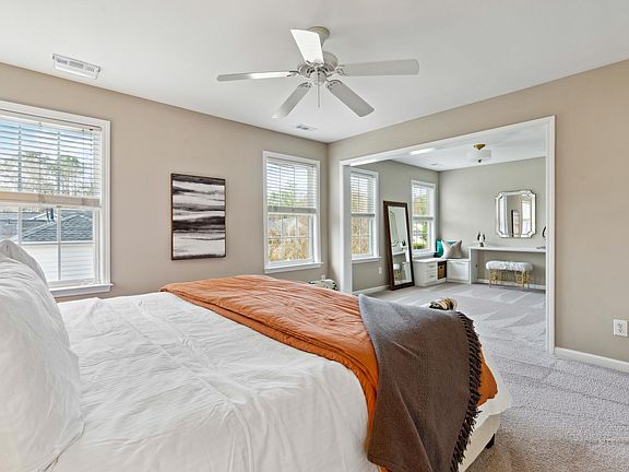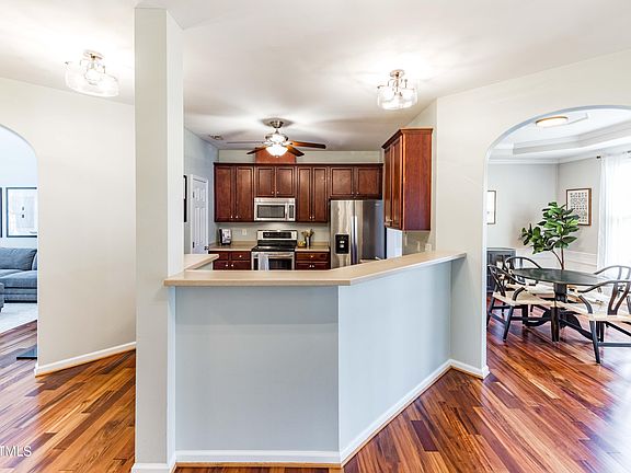 Presenting the long-awaited gem of Raven Pointe, North Raleigh! This meticulously maintained townhome offers a warm invitation into the highly sought-after community. Step inside to discover pristine hardwoods throughout the main living areas, new carpet installed in 2022, contemporary light fixtures, and a fresh coat of paint that enhances the overall appeal. The attached garage adds convenience to your lifestyle. As you enter, a double-story living room welcomes you with an abundance of natural light, creating a welcoming atmosphere. The kitchen is adorned with solid surface countertops and stainless steel appliances, elevating both style and functionality. Upstairs, two bedrooms each boast their own ensuites, providing privacy and comfort. Your primary retreat is a haven, featuring a custom California Closets vanity and shelving, complemented by MORE natural light. Begin your day in this serene space and then enjoy your morning coffee on your private screened-in porch. Don't overlook the immense walk-up attic, a hidden treasure offering ample storage. Seize the opportunity to make this townhome your own and experience the perfect blend of elegance and functionality! New roof 2019, new toilets 2022. See docs for full updates list!