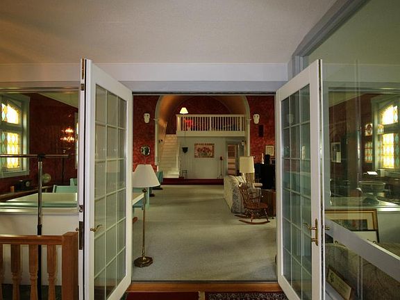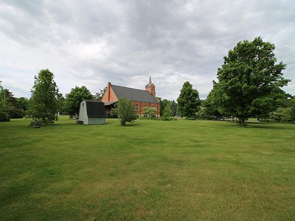 A must see- previously a church, and now a beautiful single family home situated on a 1.5 acre lot. Lots of original character throughout with round top stained glass windows, two story rounded ceiling, choir loft and vintage light fixtures. The main living level features lots of windows throughout allowing lots of natural light, a kitchen area with lots of cabinet space, formal and informal dining areas, living room, and additional sitting room with two additional bedrooms (4+ total) and a hobby room. The upper level features an open floor plan with a huge family room (would make a great meeting room or conference space) two additional bedrooms and a bathroom. The interior also features two loft spaces, dual heat with two furnaces and wood stoves and some replacement windows. The exterior features beautiful landscaping with a variety of hostas, flowers, sugar maples, and lots of gardening space. Beautiful back porch, large outbuilding, garden shed for storage, and lots of parking.