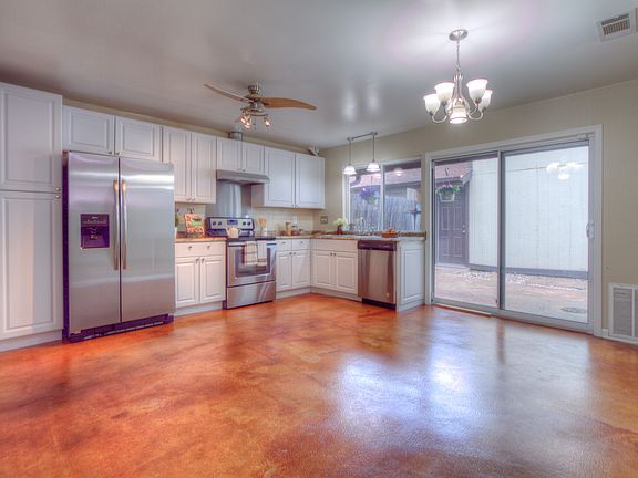 Perfect for first time home buyer or investor! Beautiful, one level, corner unit three bedroom, two bath, town home with twocar garage. The home has an open, spacious living/kitchen combo. Renovated kitchen with stained concrete flooring, newlighting, new fixtures, and new stainless steel appliances. Bathrooms have been remodeled with new cabinets, flooring andtile. You will find new carpet throughout. Fresh interior paint, new windows, doors, lighting and ceiling fans. The communityis conveniently located close to the highway for ease of access with a maintenance free exterior, grounds & pool. This homeis a must see!