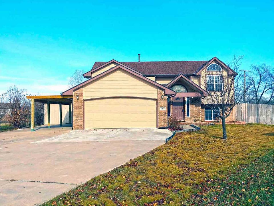 Come see the large back yard with a lovely lake view. The homeowner has added the wrought iron fencing and much of the wood fencing to fully enclose the yard. Newer carpeting, professionally cleaned and much of home recently repainted! The roof is less than 3 years old. This home has a clever design, fun for entertaining. A lovely kitchen hosts an island and modern design. A spacious back deck and expansive back yard provide lots of outdoor space for entertaining and family fun. Basement is full of view out windows and the house is filled with natural light from all angles. Homeowner has also added additional covered parking with severe storm rated covering for third and fourth vehicles. McConnell AFB and the new Southeast High School are to the south and just north of this housing development are a wide variety of shopping and eating options. This house is a must see!