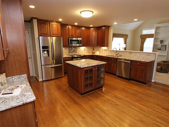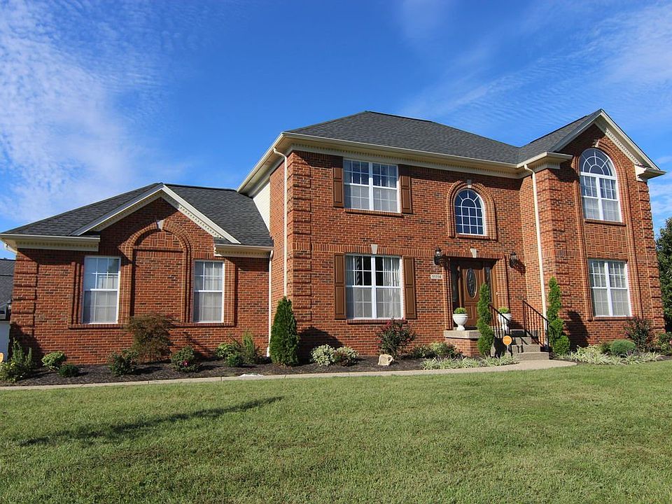 This Homearama showcase was built to dazzle, and owners have maintained that look and feel with meticulous care and lots of upgrades! From the elegant brick coynes and stately curb appeal to the touch-free kitchen faucet to the power awning over the deck and gleaming hardwoods, this home offers lots of ''extras''! The main level features an open floor plan with formal dining room just off the entry foyer, cherry/granite kitchen with 48'' cabinets and classic backsplash, a large informal eat-in area, cozy vaulted family room with fireplace, open to the kitchen. You will notice the stylish powder room on your way to the private owners' suite, with large walk-in bath and whirlpool, plus large shower enclosure. There's a second master with full en-suite bath on the second level