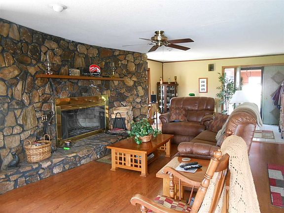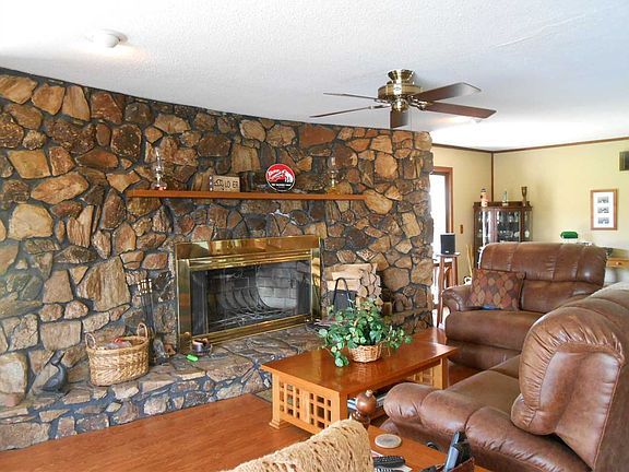 Country living on 6.48 acres! And there is history here also as this property was once a part of the Vahalla Airfield. 13 ft deep pond plus 2 barns. One of the barns has heat, air conditioning, small apartment area and office. The home itself is a one-story with over 1800 sq. ft, décor is Asian influence. Pocket doors, large stone fireplace, large master bath and walk-in closet. Updated kitchen and bath. There is a covered deck around the home that overlooks the pond. All appliances are included. 200 amp service. Home is on a concrete crawl with vapor barrier. Oversized garage. All electric: Budget electric $225 winter, $210 summer.