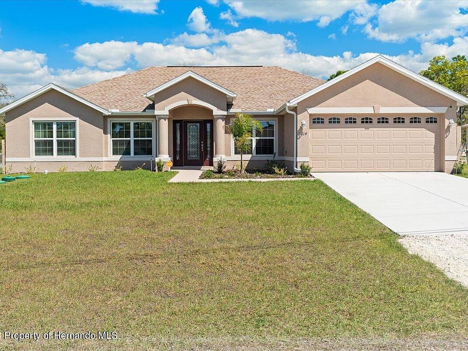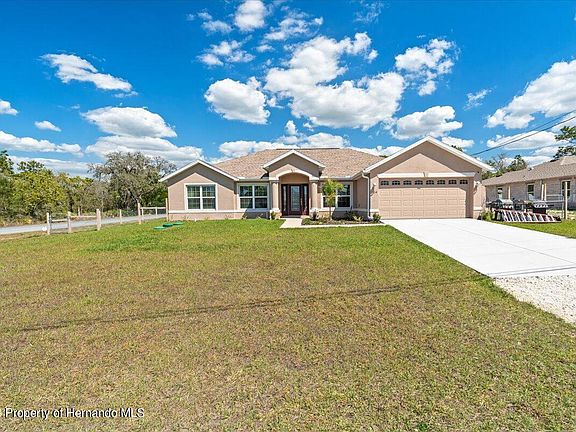PRICE REDUCED! Why wait for a new house to be built? This house was finished in late 2022. The sad owner needs to move closer to work. Modern floorplan featuring a Great Room that includes the kitchen. It has a large master suite with separate garden tub and shower. Located on a 1/2 acre lot in Royal Highlands. This location is convenient for all shopping and restaurants. The school district is Hernando county's newest school complex that encompasses all grades.