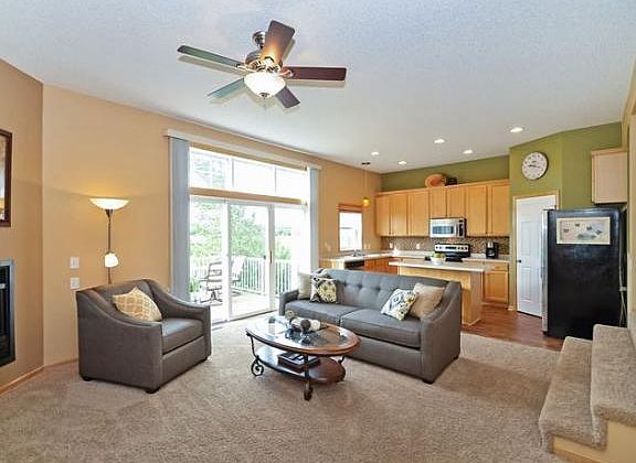 Immaculate townhome with an open layout, feature 3 BR, 4 BA, updated kitchen, SS, backsplash, new carpet throughout, private master, fireplace, deck overlooking private backyard, walkout basement. Must see!