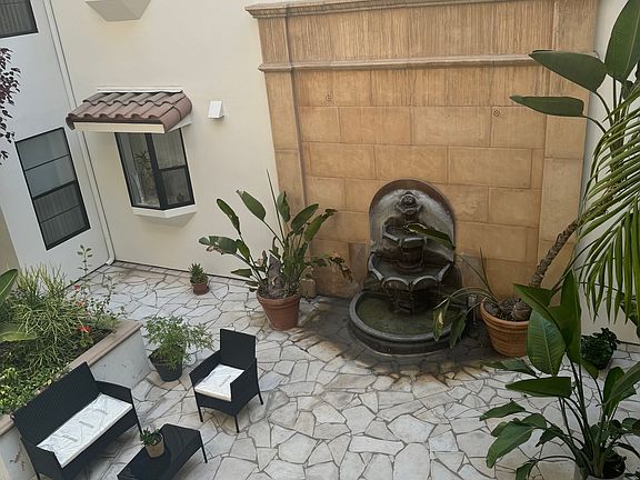 Soothing water fountainGorgeous courtyardRooftop viewGranite countertops