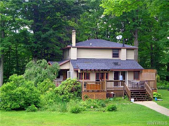 8 acres of Nature. Spring fed stocked pond with dock. 25x50 2 story Gambrel barn w/ cement floors, 3 overhead doors & electric. Small pole barn for animals. 2 story vinyl sided house. Huge deck & wrap around porch. Heavily Wooded lot with mature Maple, Cherry & Spruce. Brick wood burning fireplace. Extremely private setting close to Rt. 16 & Holland Village. Easy commute on Rt. 16 & Rt. 400. Outdoor lovers paradise. An Ultimate Man Cave Barn.