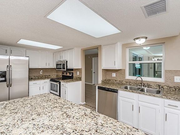 Step in to this charming Pool home with 3 bedrooms 2 bath with a double wide Garage with a spacious split plan of 1719 square feet of living space, this lovely home has been updated with all new amenities , Brand new roof with architectural shingles, new floor tiles, carpeting in all 3 bedrooms , beautiful redone kitchen cabinets with a gorgeous granite top new stainless steel appliances , both bathrooms have been completely renovated with new everything, the whole house has been painted in the exterior and interior, the pool also received a nice coating of baby blue epoxy resin, brand new pump and filter, as well as a lanai with open space facing the pool area for entertaining, for privacy there is a vinyl fence installed while you enjoy the Florida weather in the pool. Also there are vinyl windows and sliders, This house is move in ready !! This property has a documented foundation repair, This home is solid, located in the quite neighborhood of Driftwood Village Timber oaks all schools are only minutes away. Hurry this one will sell fast !!