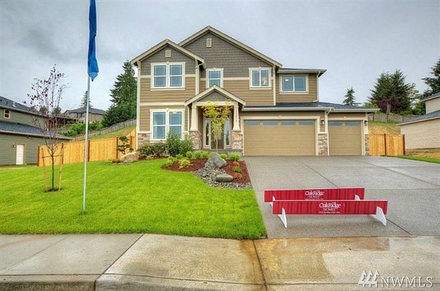 These beautiful homes in the community of Shawnee Ridge are being built on some of the last Luxury view lots Puyallup has to offer! Huge lot private lot with views of Mt. Rainier. This home is complete with handscraped hardwoods, rich granite countertops w/ full tile back splash. Oversized slider in the family room with plenty of windows to let in an abundance of light! Beautiful Master suite is complete w/ undermount sinks, extensive tile, and large soaking tub!