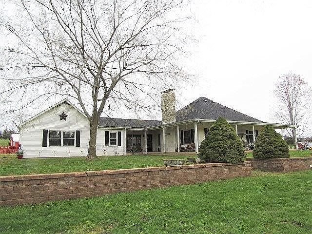 This is a four-bedroom home with two and a half bathrooms. It is built on a partial basement. This home was built in 1920 and has 2571 square feet of space. The exterior is vinyl siding with a shingled roof (new January 2021). There is an enclosed porch on the back of the home and a covered wrap around porch on half the house. It sits on 5 acres of land. There is a creek that flows through the property. Also included is a two-car detached garage (concrete floors and electric service), a small machine shed, a 40x60 hay barn with a 16' lean to on each side, and a 40x42 horse barn with two stalls and a tack room. The barns have metal exteriors. The living room has original hardwood floors and vaulted ceilings with tongue and groove wood and beams on the ceiling. It has two HVAC systems which were replace in 2013. It has a well and septic system. The electrical was updated in 2013 as well.