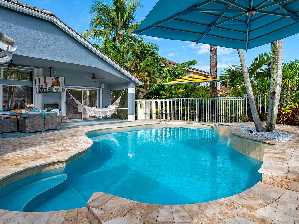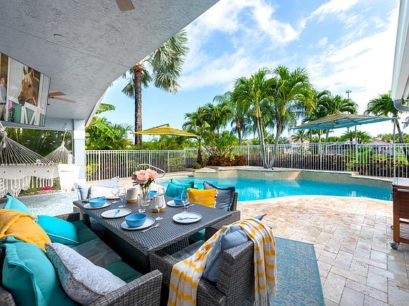 This sophisticated home has been fully renovated and is available for seasonal lease for the 2021 season. With only 4.8 miles to the show grounds and 1.6 miles to the International Polo Club, the single-story house is situated on a spacious waterfront lot on a quiet, cul-de-sac street in the gated community of Grand Isles. It features 5 beds, 3 baths, 2-car garage, and a gorgeous pool area overlooking the water. Bring only your toothbrush, as this upscale home is offered fully-furnished! Upgrades include stylish wood flooring throughout, fresh & modern paint, granite countertops, stainless appliances, and walk-in showers, etc. 2020-10-08