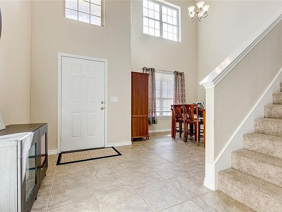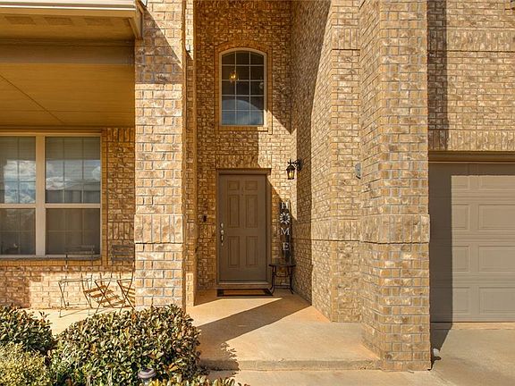 LOTS OF SPACE, flexible floor plan with room for everyone! FIVE true bedrooms. Main level with formal dining area/sitting room/home office, open kitchen with pantry, breakfast bar seating and casual dining space, living area/family room with fireplace, oversized master suite with double sinks and great walk-in closet, PLUS main level full second bed and bath. Upper level features 3 additional bedrooms, bathroom AND family/game/bonus room. Mostly fresh paint through-out, 2-inch blinds, neutral colors. Covered patio, in-ground garage storm shelter. One year home warranty in place for buyer. Easy access to I-40 & turnpike. Buyer to verify schools.
