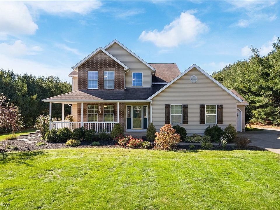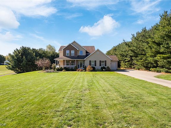Check out this amazing 4 BR, 2.5 BA Colonial on over 1.5 acres located in the top rated Lake Local School District. This one has so much to offer, so pay attention to updates/amenities. As soon as you pull into the long concrete driveway you will notice the brick/vinyl exterior, front covered porch as you pull up to the oversized 3-4 car attached heated garage (942 sq. ft.). Through the front door offers an inviting 2 story foyer. As you walk down the hall you will be amazed at the large living room w/gas fireplace open to a massive 24 x 14 eat-in kitchen. This offers 2 pantries, granite counter tops, soft close drawers and a huge island. Off the back are many windows letting in lots of natural light. Also there are French doors leading to the new stamped concrete patio (2021) w/gas firepit. Sit on your private patio overlooking your large tree lined back yard. Exterior also offers another 3 car detached garage (775 sq. ft.) plus a 16 x 12 shed w/loft and covered side. First floor also offers laundry room, half bath and 4th bedroom/office. Upstairs has 3 good sized bedrooms and loft. Master bedroom has his/her walk-in closets, full bath w/jetted tub/shower combo and double sinks. Second bedroom has 2 walk-in closets as well. Basement has a finished rec room plus a large storage area. Other updates include new RO system '24, interior paint '24, high efficiency furnace/AC '20, well pressure tank '17 and more. This one is truly a must see and will make a great house to call HOME!