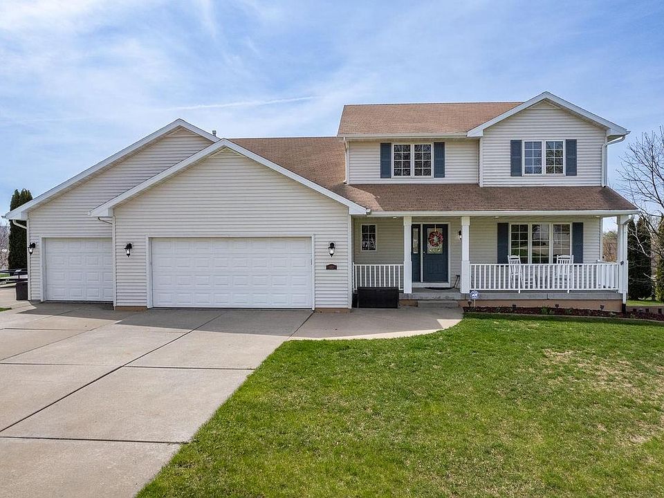 This five-bedroom, two-story home boasts breathtaking views of the majestic Baraboo Bluffs, offering a serene and picturesque backdrop for everyday living. The main level open-concept layout seamlessly connects the living room, dining area, & kitchen, creating an inviting space for entertaining family & friends. Solid wood floors. Upstairs, you'll find the primary suite, 3 additional bedrooms, each offering comfortable accommodations & plenty of closet space. Finished lower level family room, bedroom and full bath. Huge deck and a stamped concrete patio with a built in fire pit. 3 car garage and located in one of Baraboo's favorite neighborhoods.