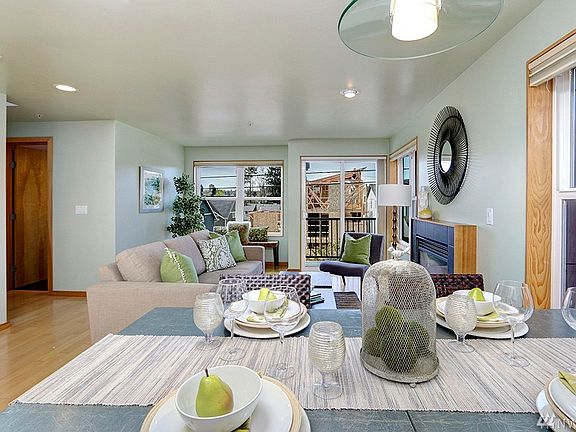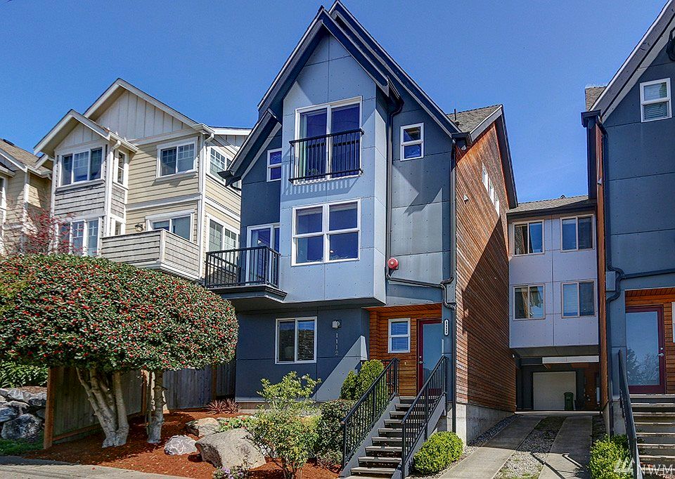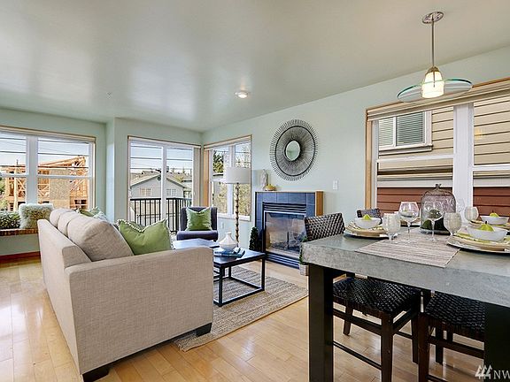 Contemporary style + functionality blend artfully in this spacious townhouse with city views! Better than new, with an open floor plan, laundry and pantry area, gas fireplace and range, hardwood floors, custom blinds and view balcony. Large master suite has vaulted ceilings, 5 piece bath and walk-in closet. 4 bedrooms plus flex room and 1 car garage. Only two small shared walls. Fabulous location! Walk to 4 parks, Standard Brewing, That's Amore, Lake Washington and close proximity to light rail.