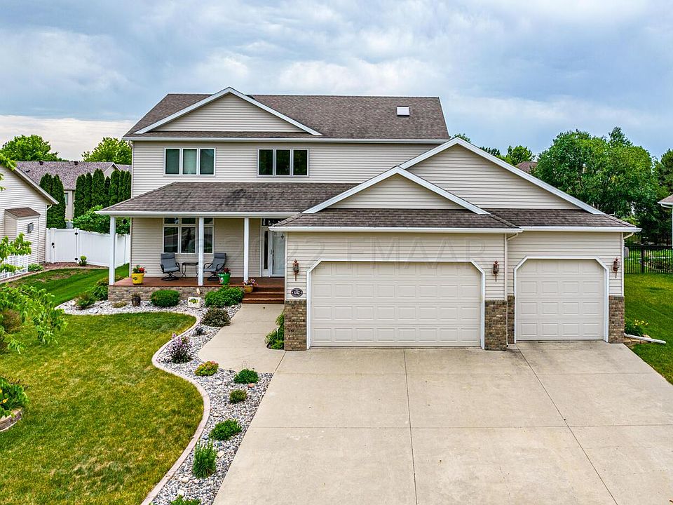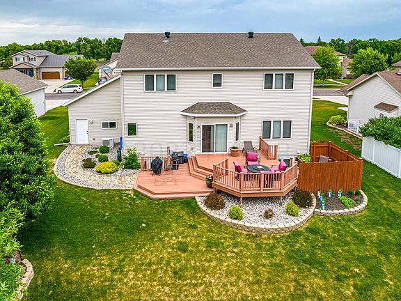 Very well built 2 story located in fantastic neighborhood in North Fargo! 5 beds, 4 baths, HUGE 4 stall finished heated garage/shop, steel sided, fully landscaped, front porch & 2 decks, patio, sprinkler system, Beautiful built ins throughout home & 2 fireplaces.. Almost NO SPECIALS, Full Wet Bar with (sink,fridge,wine fridge), NEW flooring on main, NEW furnace and AC! 3 levels of surround sound with zone controls and insulated for sound in basement walls/ceiling. So many features and upgrades in this home. Come see this fantastic home and location for yourself!!