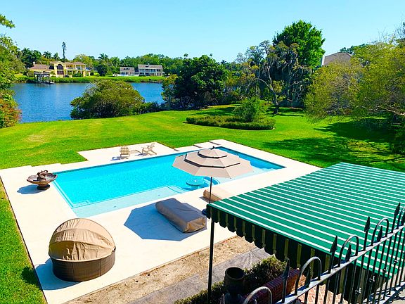 Waterfront Mansion with dock. Flexible lease starting Aug 1. 7000 sf living space. 2.3 acres Gated&Fenced. 2 car garage and ample outdoor driveway parking. 5 bedrooms: 1) 1000sf Master, cal-king, balcony, fireplace, jacuzzi, 2 walk-in closets 2) En-Suite, cal-king, walk-in closet plus 3 additional closets. 3-4) Jack&Jill, Queen and full beds, walk-in closets, separate sinks, shared shower and toilet 5) 5th bedroom can be used as a dressing room for the master, a nursery or as a separate bedroom. Formal livingroom w/fireplace Formal Library / home office on ground floor which could be used as a 6th bedroom for guests / parents Formal dining room Chefs kitchen with gas stove top, Bosch appliances Kinetico Water softener and RO system Great room with fireplace, vaulted ceilings 2 large Screened porches Huge brick patio with awnings and arhaus furniture Kitchen pantry, laundry room, laundry shoots Fruit Orchard: tangerine, grapefruit, kumquat, navel&blood orange, mandarin, mango, lemon, papaya, avocado, fig Vegetable Garden 20x40 pool with travertine surround, sun beds, island 70' dock with 20k lb lift, fish cleaning station, fresh and well water Outdoor firepit 2 car garage with ample parking in the driveway Ring, Arlo Cameras New A/C Units Motion lighting Hardwood & Spanish tile (no carpet) Brick hurricane resistant New Roof Available Aug 1. Flexible lease term. First, last, security, renters insurance. Partially Furnished. Pets allowed. Tenant pays all utilities ~1.5k per month. No smoking.