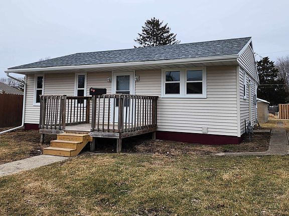 Beautifully renovated ranch ready for its new owners!! This home enjoys a new roof,, siding, windows, furnace (2020), and has had a complete facelift with new paint, interior doors, lights, ceiling fans. Brand new white kitchen cabinets set off the marble look of the countertop, matching tile backsplash, new range hood, & still room for a table too! Very nice full bath with linen closet, attractive vinyl luxury plank flooring throughout, updated plumbing, huge living room, adequate bedrooms & closets plus useable basement for a family room/extra space or just storage for your stuff!! Detached 1 car garage too all situated on a 41x124 lot.