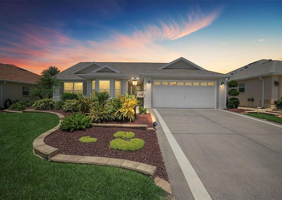 One or more photo(s) has been virtually staged. BOND PAID! TURNKEY (All Furniture & Furnishings Included)! Meticulously UPDATED, custom Whispering Pine model nestled in the central Village of Hemingway. As you approach, the home's impressive curb appeal greets you with meticulously upgraded landscaping, stack stone borders, stone mulch, and a painted walkway and driveway leading to the elegant leaded-glass front door. Step inside this 3-bedroom, 2-bathroom home (3rd bedroom features a built-in closet) to discover an OPEN FLOOR PLAN adorned with upgrades at every turn. Enjoy the luxury of ALL-TILE flooring and CROWN MOLDING throughout, enhancing the home's elegance and ease of maintenance. Plantation shutters grace the windows, offering both style and privacy. The gourmet kitchen is a chef's delight, boasting GRANITE countertops, STAINLESS STEEL Samsung appliances including a double-oven range, 3-drawer refrigerator, and dishwasher. Maple wood cabinets feature under- and over-cabinet lighting, pull-out shelves, a lazy Susan, and a tile kickplate on the kitchen island. Built-in cabinetry with display lighting, along with a wine refrigerator, add functional sophistication to the convenient dinette. Entertain effortlessly in the double-pane GLASS-ENCLOSED LANAI with a MINI-SPLIT A/C UNIT and tile flooring, providing a tranquil oasis. The PRIVACY WALL and beautifully lighted landscaping create the perfect ambiance for outdoor gatherings. Additional enhancements include recessed lights in the kitchen, upgraded fans throughout, BUILT-IN SHELVING in all closets (including the linen closets), and a newly painted garage floor. A NEW ROOF installed in 2023 ensures peace of mind and efficiency for years to come. Located in the heart of The Villages, this home offers unparalleled comfort and luxury with a multitude of upgrades that must be seen to be fully appreciated. Schedule your showing today and discover why this custom Whispering Pine model is the perfect place to call home. The village of Hemingway is conveniently located between Brownwood Paddock Square and Lake Sumter Landing; Close to Havana Country Club, Roosevelt Executive Golf Course, Turtle Mound Executive Golf Course, and Bacall & Bogart Executive Golf Courses; multiple pools, golf, and pickle ball; and 466A with an abundance of shopping, restaurants, banks, and medical. A friendly neighborhood is the “icing on the cake” with regular gatherings and social events. PLEASE WATCH OUR WALKTHROUGH VIDEO OF THIS BEAUTIFUL HOME and CALL TODAY to schedule your Private Showing or Virtual Tour!