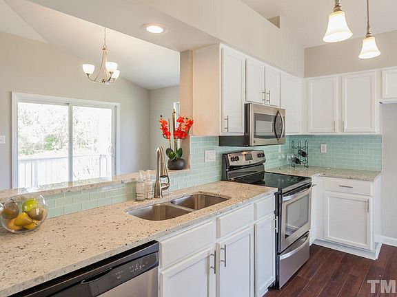 Multiple offers. Highest & Best due by 4/24 at 5pm. GORGEOUS One level living with Rocking Chair Porch! Features a bright open floor plan & upgrades galore! This 3 bed home plus office includes new custom designer kitchen with granite, glass tile back splash & SS appliances. EXOTIC 5 inch Bamboo hand scraped hardwood flooring; NEW plush carpet & designer paint. AWESOME master suite with new vanity & HUGE WIC. Office could be used as 4th bedroom. Convenient to Downtown Raleigh & 440. No HOA dues.