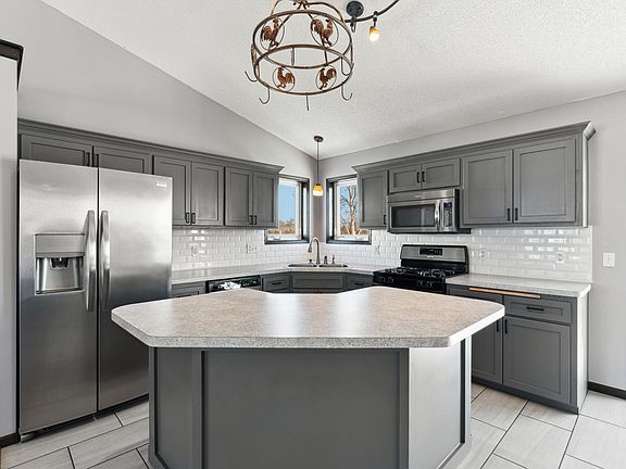 Meticulous 5-Bedroom home ready to move in and enjoy! So many recent updates including new furnace-2022, new water softener-2022, newer roof-2020, enameled trim and kitchen cabinets in warm colors! Custom barn wall in living room adds charm and character. Updated lighting throughout, fresh paint, new carpet in bedrooms, updated tile and plank flooring and much more! Full 3-stall wide concrete driveway and additional trailer parking between homes! Relax with the private views from the deck under your lighted pergola. New retaining wall in back yard and updated landscaping surround. Come take a look. This