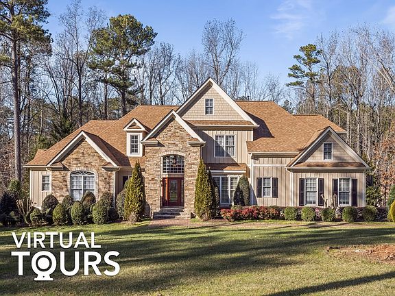 Stately 4 bd / 4.5 ba home situated on almost half an acre of land! You won’t want to miss this home’s gourmet kitchen, multiple living areas, usable attic currently used as a game room, and gorgeous deck! The exterior has great curb appeal with its long driveway, wooded backdrop, and beautifully manicured landscaping, while the interior is full of light and lovely spaces to comfortably live and entertain. Cook a delicious meal in the kitchen, equipped with granite countertops, stainless steel appliances, tile backsplash, a center island, built-in desk, and pendant/recessed light, then dine in the breakfast area or in the formal dining room. Take your pick from any one of the gorgeous living spaces - gather with guests in the main living room, where there is a gas fireplace and built-in shelving; relax in the adjacent den and sunroom, featuring a floor-to-ceiling stone fireplace and skylights; and host movie and game nights in the third-floor gaming/storage area! When it’s time to wind down, the primary suite offers a tray ceiling, double vanities, a jetted tub, and walk-in glass door shower with dual heads! There are two guest bedrooms with walk-in closets and ensuite baths, as well as a fourth bedroom and 1.5 more baths. The home also boasts an office, dry bar, laundry room, and surround sound speakers! Outside, the deck provides the perfect place to relax, BBQ, and overlook the lush lawn and tranquil trees. Central A/C and Forced Air heating. Water filtration. Sprinkler and alarm systems. Three car garage. Newer exterior paint and roof. Community pool and clubhouse! Located across from Brevofield Golf Links and near shopping and dining! Easy access to hwy 1 and Raleigh. Buyer should verify all information.