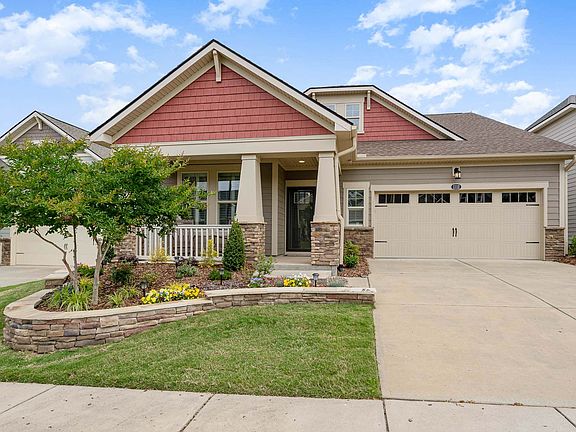 Move in before summer starts to enjoy everything in this active adult community! Ranch home with hardwood floors, chef's kitchen with Granite counters, wall oven, and built-in gas range. Double fireplace keeps you cozy in family room and den. Two bedroom, two bathrooms, and flex space. Primary suite has tray ceiling, bath with double vanity, oversized shower, and large walk in closet. Throughout are custom window shutters and sliding door shutters leading to screened porch. Amenities list reads like a resort!